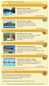 Buchungen für Nazar Reisen gibt es 25 EUR Sonderrabatt. Die Aktion läuft bis zum 31.07.2007.