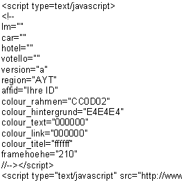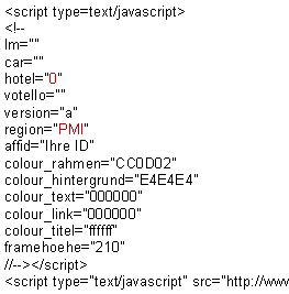 Um den Austausch und das Entfernen der Hotelangebote durchzuführen, gehen Sie in Ihren Quelltext - dort befindet sich der oben stehende Code - und ändern nur die zwei rot markierten Bereiche.