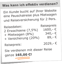 - Folge-Werbevergütungen, wenn die Besucher der eigenen Webseite erneut buchen, Motivation zu Folgeverkäufen durch Kundenbindungsmaßnahmen, wie z.B. Sonderaktionen, Newsletter und Follow-ups.